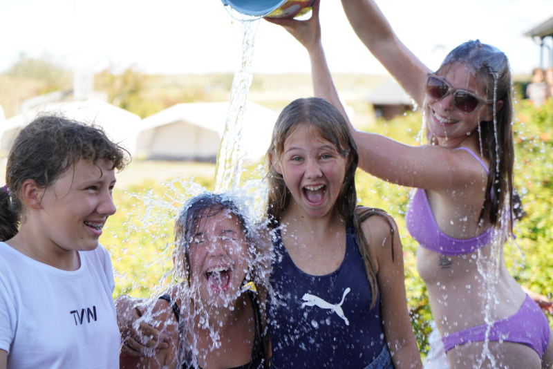 Wie jeden Tag wurden alle Zelte morgens um 7:30 Uhr mit lauter Musik aufgeweckt. Nach dem Fertigmachen gab es um halb neun Frühstück. Statt den üblichen Lagerdiensten ging es für uns danach zum Strand, wo wir den Vormittag mit Baden, Volleyballspielen und Sandburgen bauen verbrachten. Nach dem Mittagessen am Meer, das wir uns beim Frühstück gerichtet hatten, ging es zurück zum Lager, um jetzt die Lagerdienste anzutreten, was aber in einer riesigen Wasserschlacht endete, die die Betreuer heimlich geplant und vorbereitet hatten. Mit Eimern, Spritzpistolen und Wasserschläuchen battelten sich die Teilnehmer und Betreuer auf dem Zeltplatz. Nachdem alle nass wurden, was von den Betreuern ausführlich überprüft wurde, duschten wir und erledigten dann die Dienste. Um 18 Uhr gab es zum Abendessen Gaisburgermarsch, einen Eintopf mit Nudeln, Gemüse und Fleisch. Nach ein wenig Freizeit bereiteten wir uns für die Disco mit dem Motto „Bad Taste“ vor. Es war ein großer Spaß, zu sehen, was sich die Teilnehmer haben einfallen lassen. Von unseren Türstehern wurde kontrolliert, ob die Outfits schräg genug waren. Den Abend verbrachten wir mit Singen und Tanzen zu unterschiedlichster Musik, für die unser DJ Daniel verantwortlich war, bis die Nachtruhe um 23 Uhr mit einem Lied eingeläutet wurde. Glücklich und zufrieden fielen wir alle müde ins Bett.