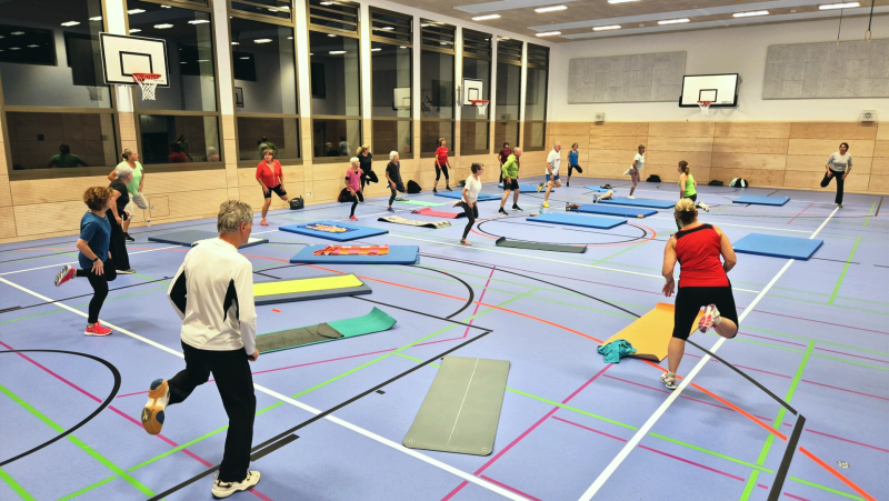 Seit Beginn des neuen Schuljahrs Sept.2025 konnten wir von der seit vielen Jahren benutzten Stadtparkhalle in die neu erbaute Jahnhalle, eine reine Sporthalle, wechseln. Wir freuen uns sehr darüber. (Bilder 24.09.2025, links mit hellgrünem Shirt unsere Übungsleiterin Ute M.)